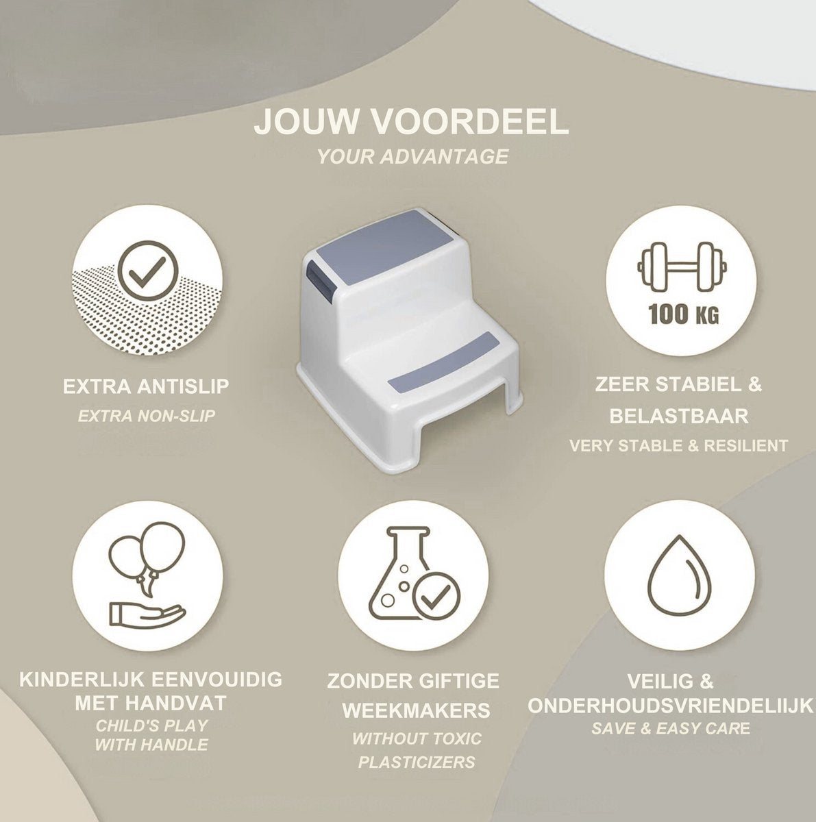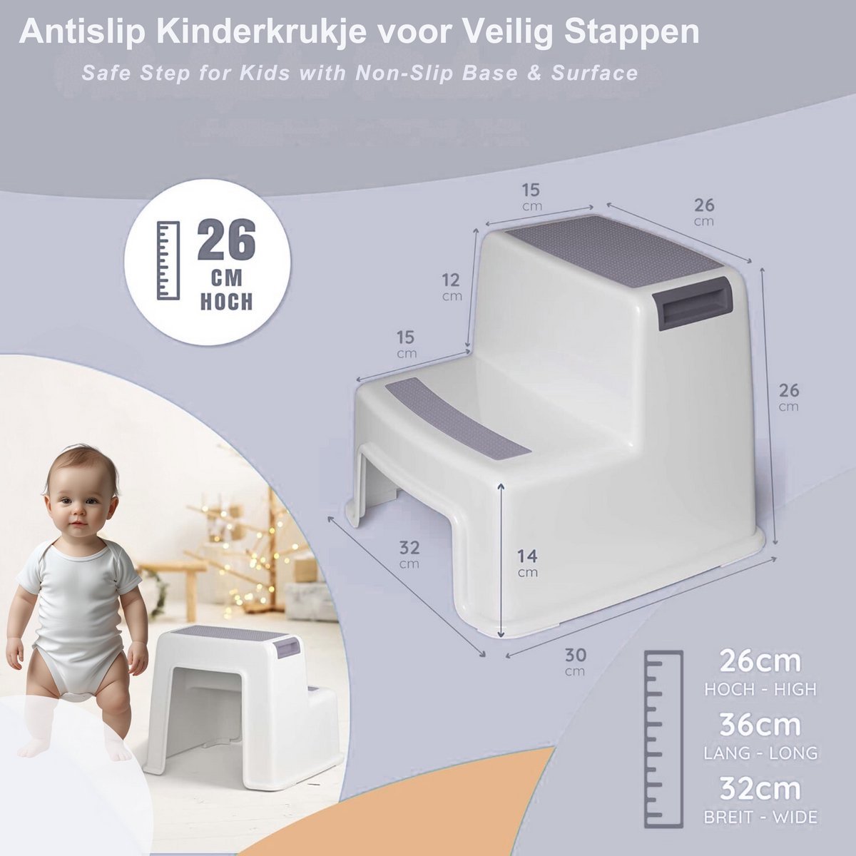 Jooier Premium 2-Step Baby Stool – Safe, Non-Slip Toddler Step for Bathroom, Kitchen & Bedroom – Perfect for Potty Training and Independent Kids (Gray)