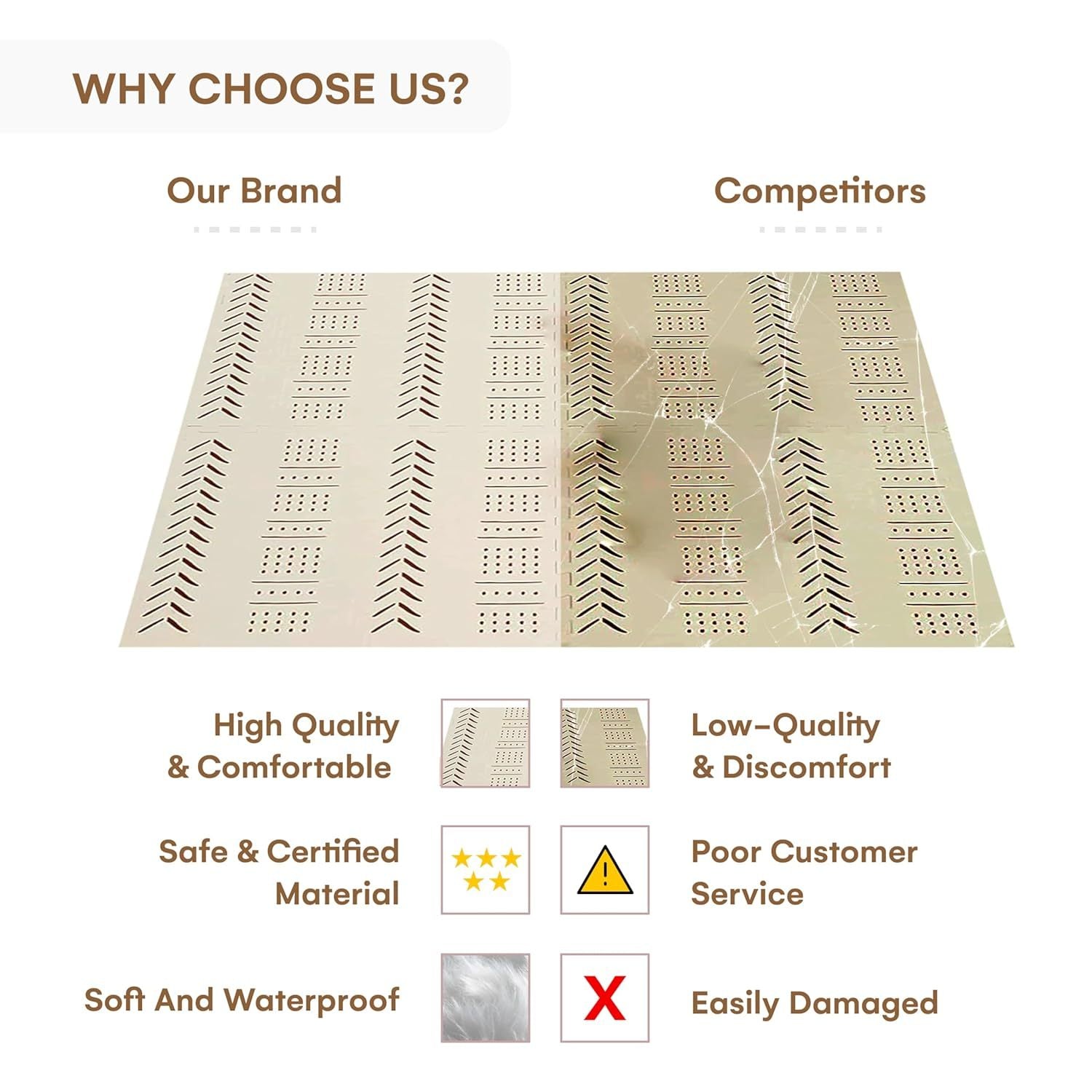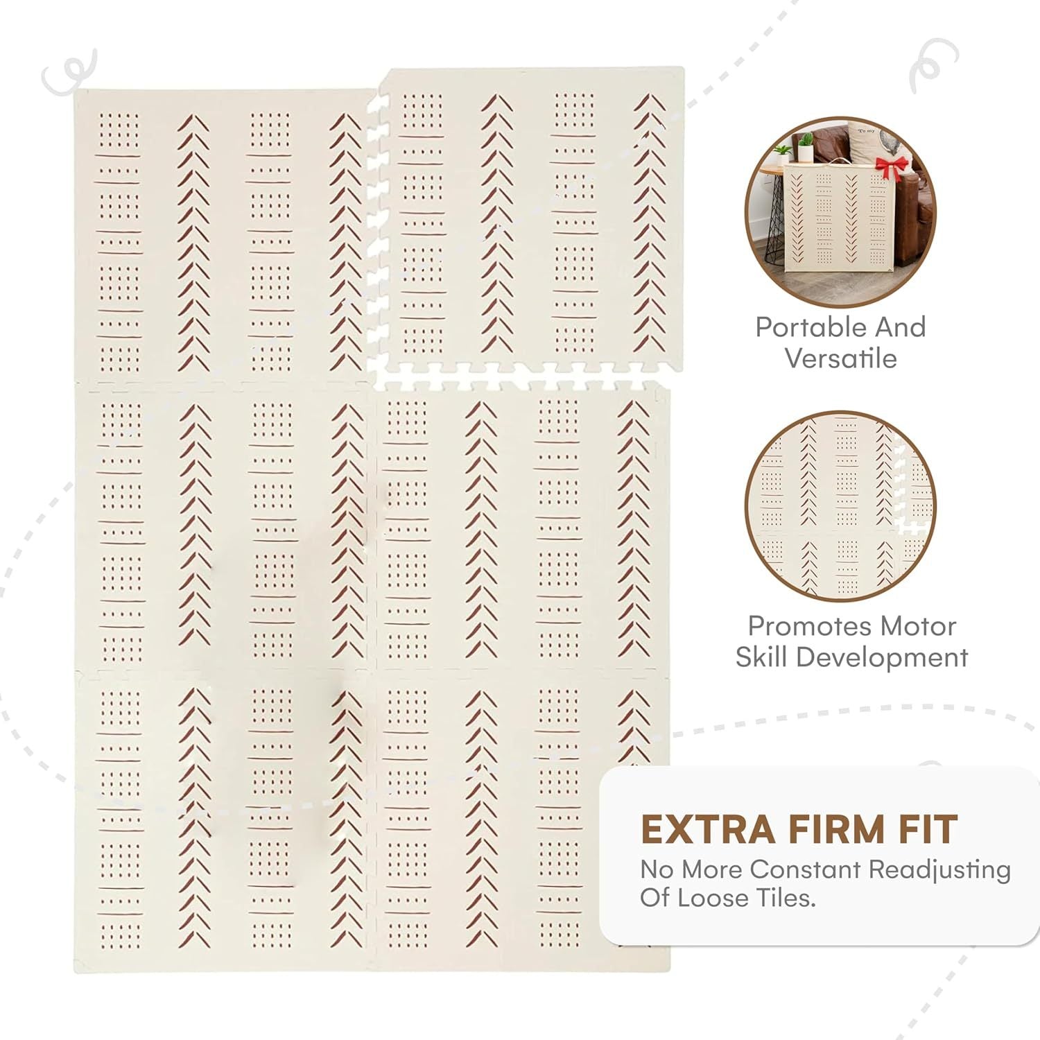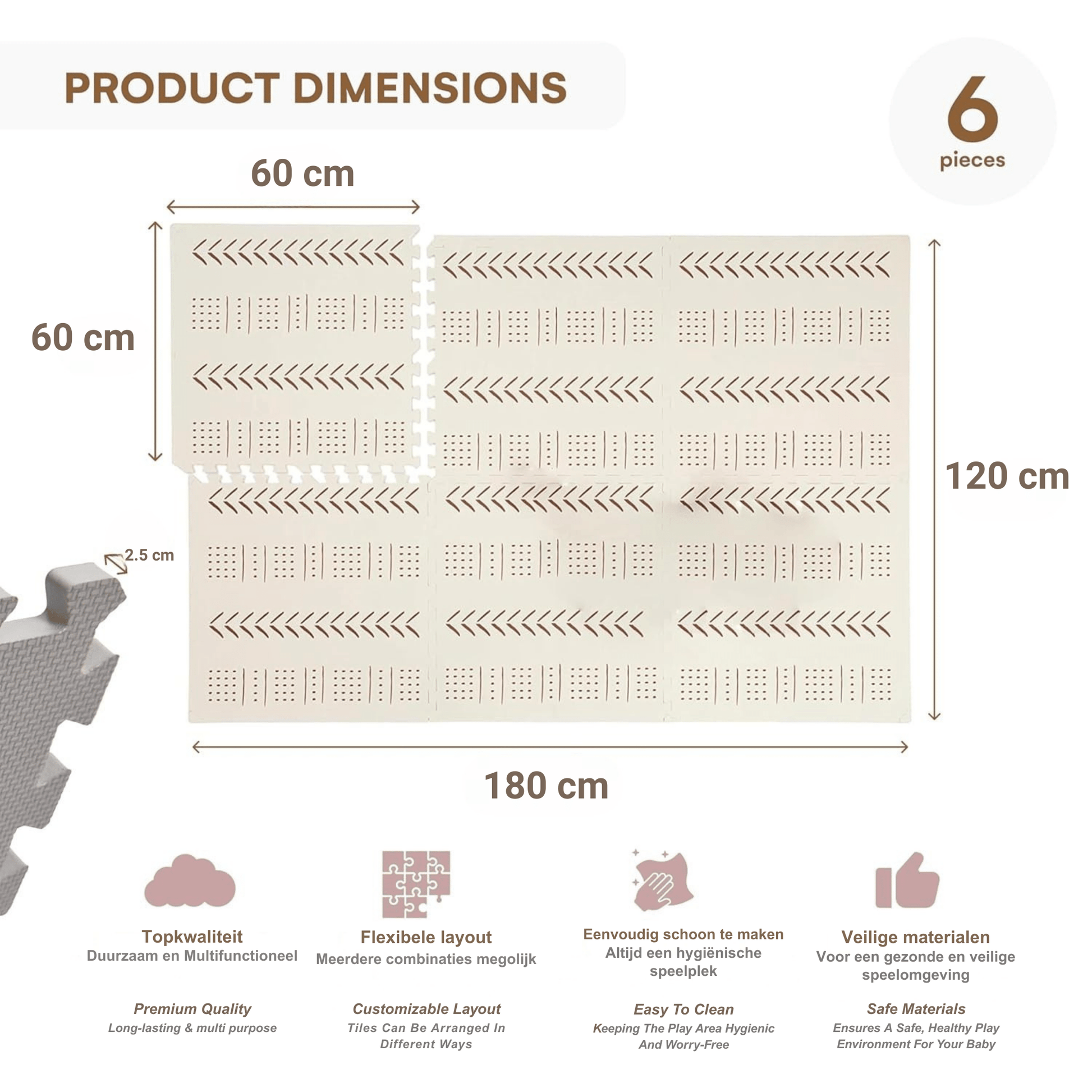 KinderNest Foam Baby Play Mat - 6-Piece, Tested Safe, Non-Slip, Soft & Waterproof Crawling Mat - Beige, 180x120 cm