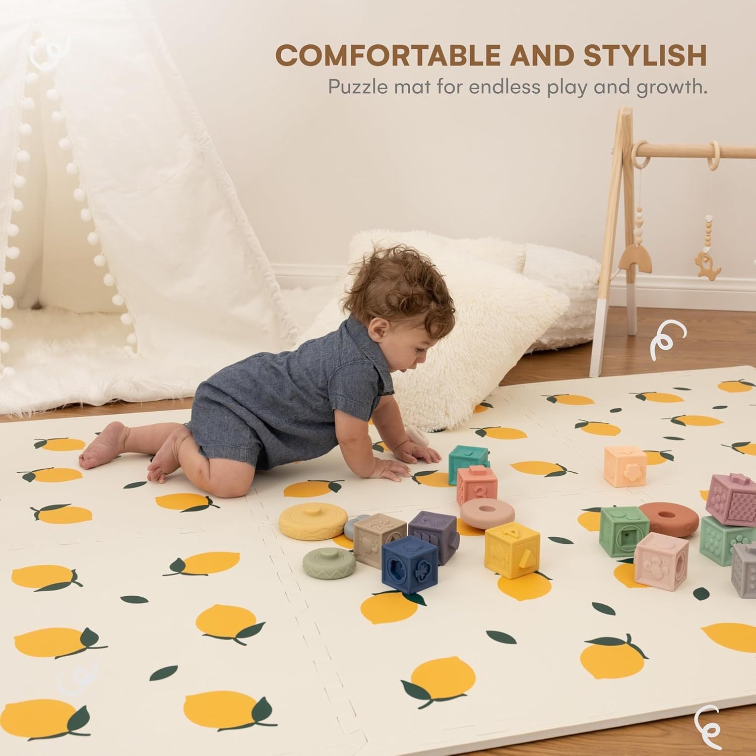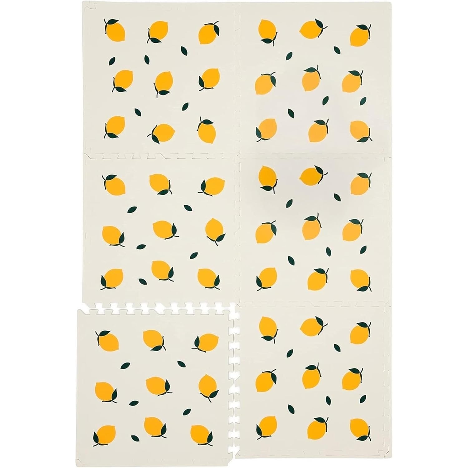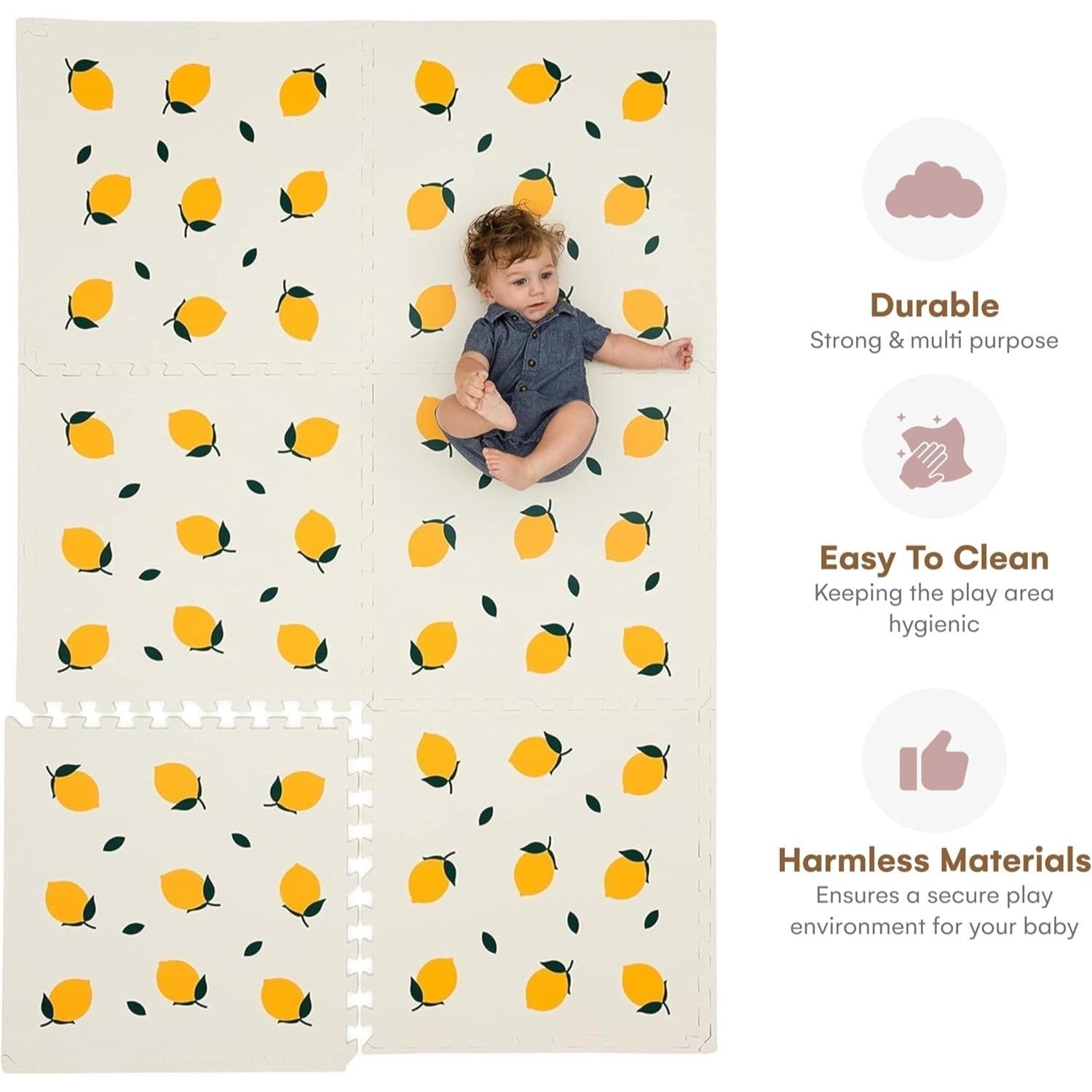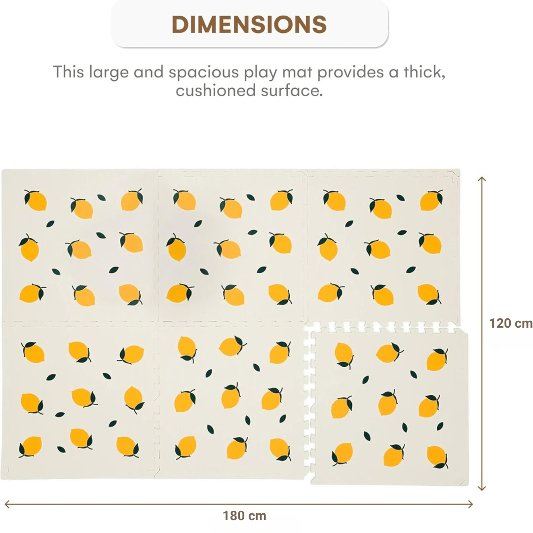 KinderNest Schuim Baby Speelmat - 6-delig, Getest Veilig, Antislip, Zacht & Waterdicht Kruipmat - Lemon Cream - 180x180 cm