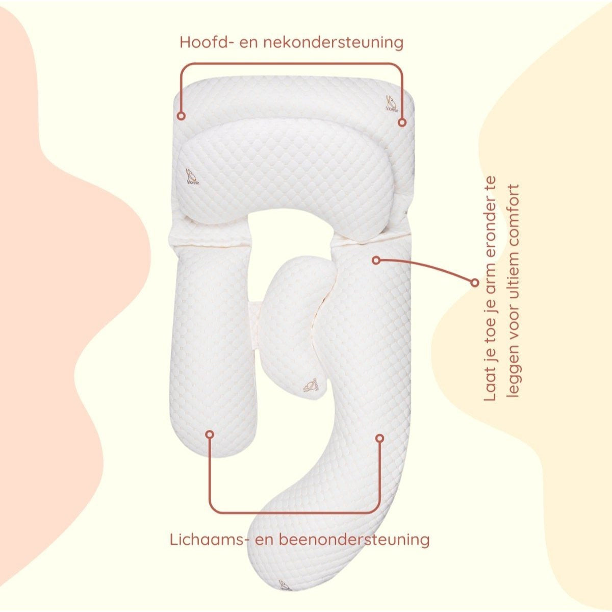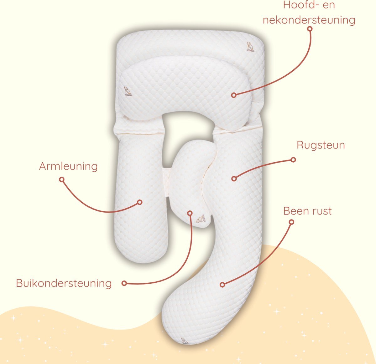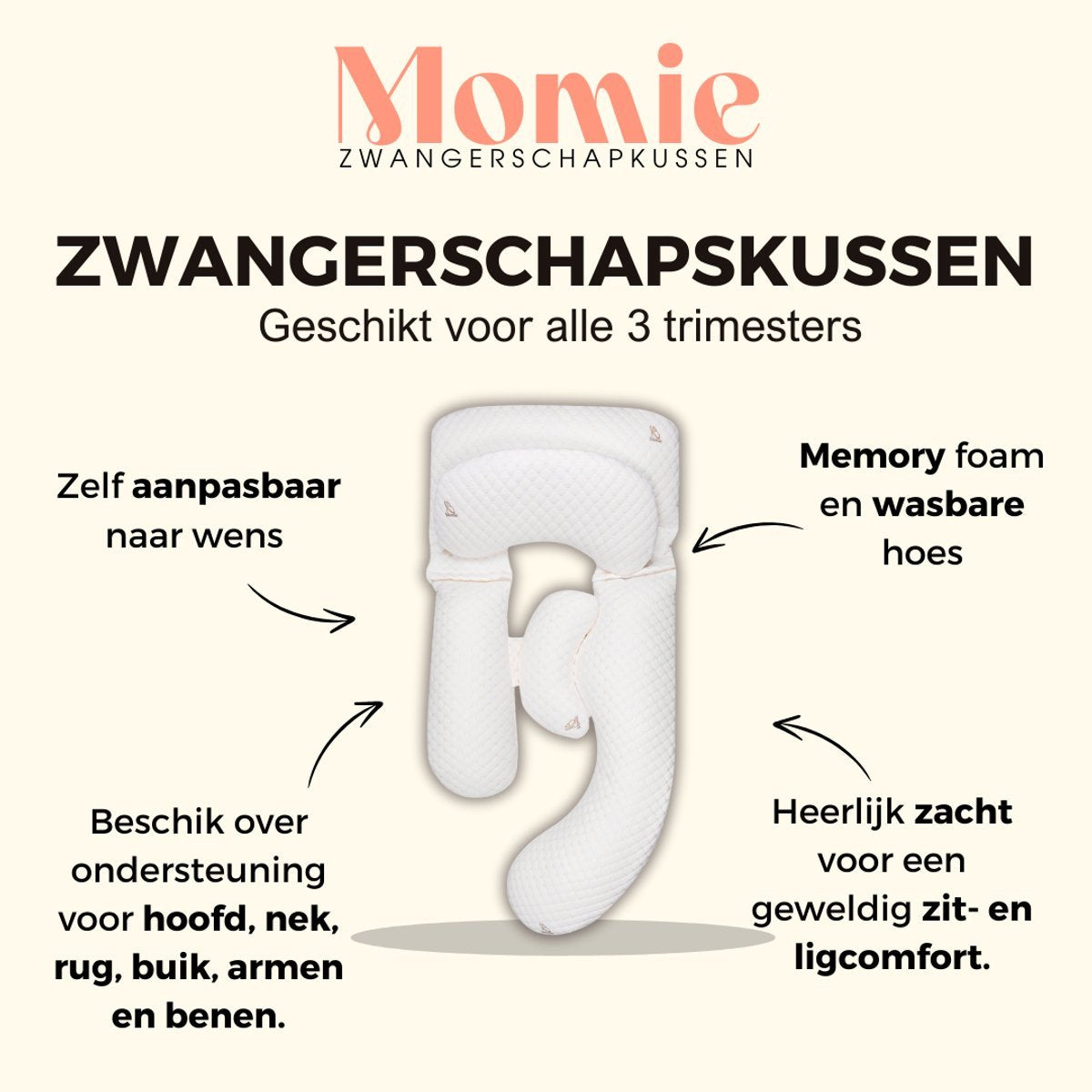 Momie™ 5-in-1 Pregnancy & Nursing Pillow – Adjustable Full-Body Support for Neck, Back & Belly, Memory Foam Comfort, Removable Washable Cover – Compact & Space-Saving
