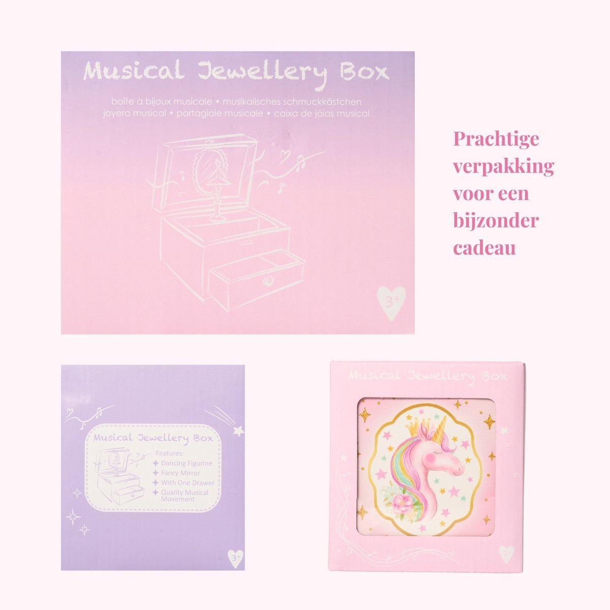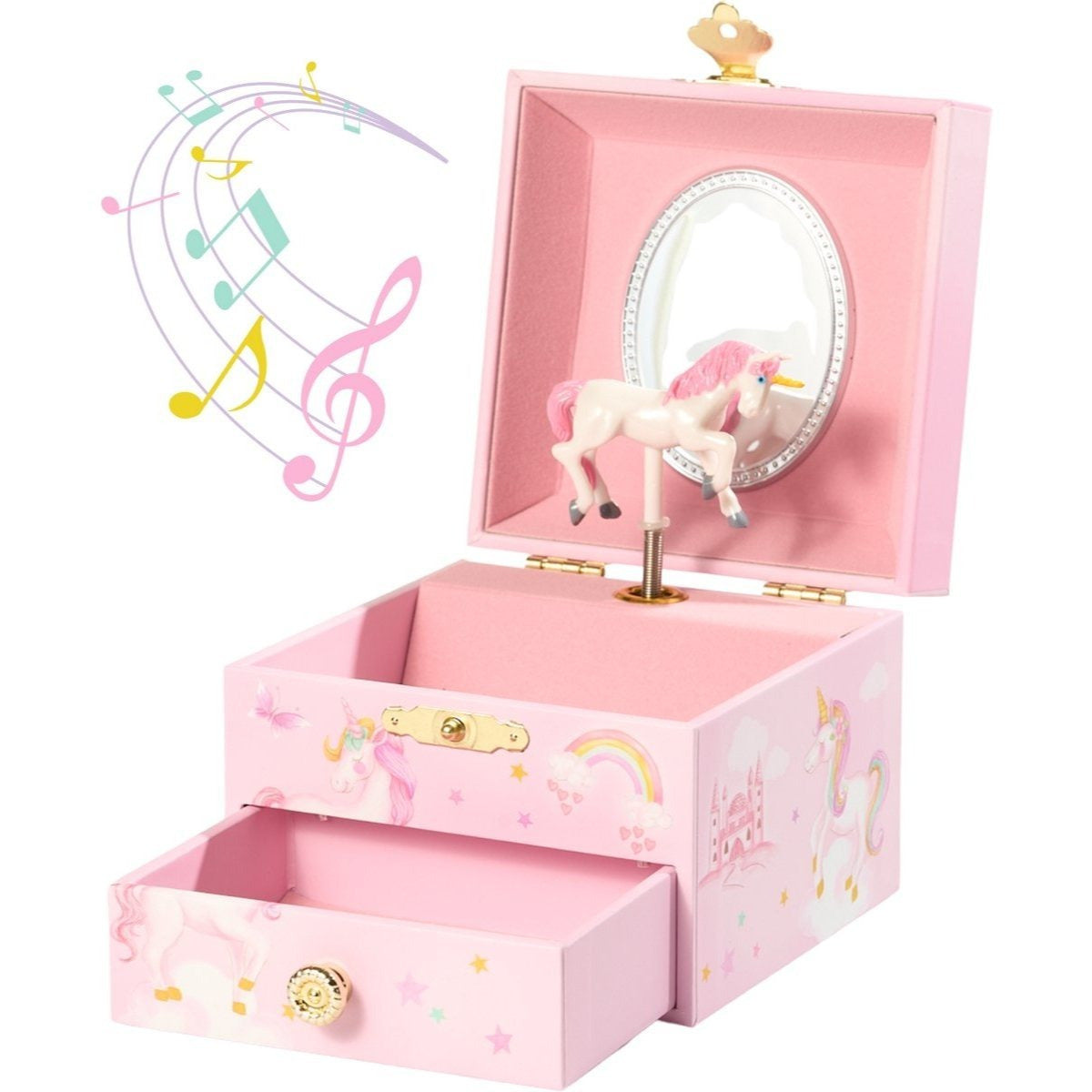 Unicorn Musical Jewelry Box with Drawer – Rainbow Design, Dancing Unicorn Figurine & Twinkle Star Melody – Gift for Girls